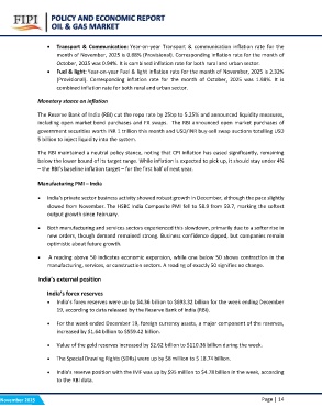 • Fuel & light: Year-on-year Fuel & light inflation rate for the month of November, 2025 is 2.32%