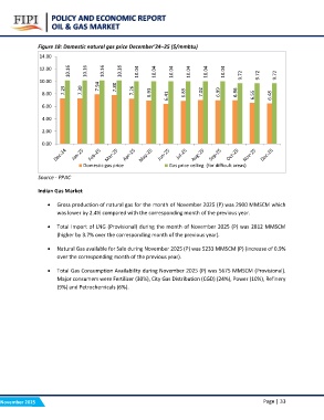 • Natural Gas available for Sale during November 2025 (P) was 5233 MMSCM (P) (increase of 0.9%