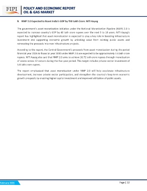 The report emphasized that asset monetization under NMP 2.0 will help accelerate infrastructure