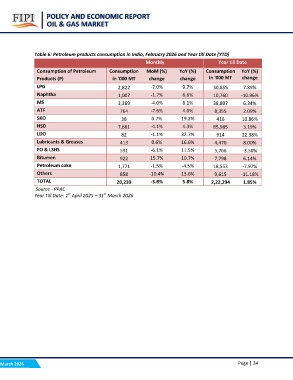 Table 6: Petroleum products consumption in India, February 2026 and Year till Date (YTD)