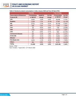 Table 6: Petroleum products consumption in India, January 2026 and Year till Date (YTD)
