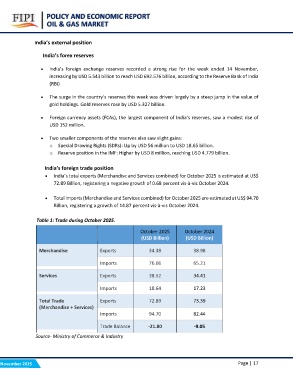• India’s total exports (Merchandise and Services combined) for October 2025 is estimated at US$