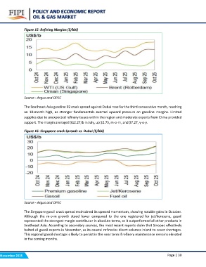 The Singapore gasoil crack spread maintained its upward momentum, showing notable gains in October.