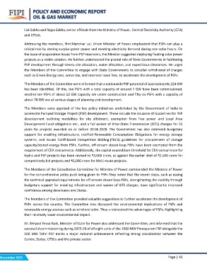 PSPs across the country. The Committee also discussed the environmental implications of PSPs and