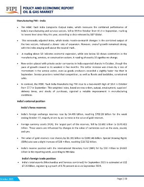 India’s manufacturing and services sectors, fell to 59.9 in October from 61.0 in September, marking