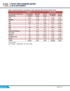 Table 6: Petroleum products consumption in India, September 2025 and Year till Date (YTD)
