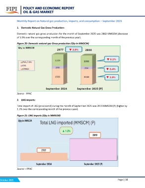 Domestic natural gas gross production for the month of September 2025 was 2860 MMSCM (decrease