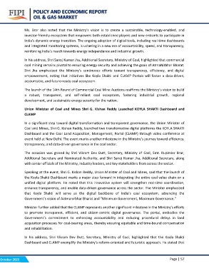 empowerment, noting that initiatives like Koyla Shakti and CLAMP Portals will foster a data-driven,