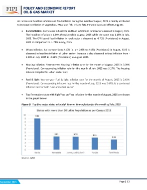 • Top five major states with high Year on Year inflation for the month of August, 2025 are shown